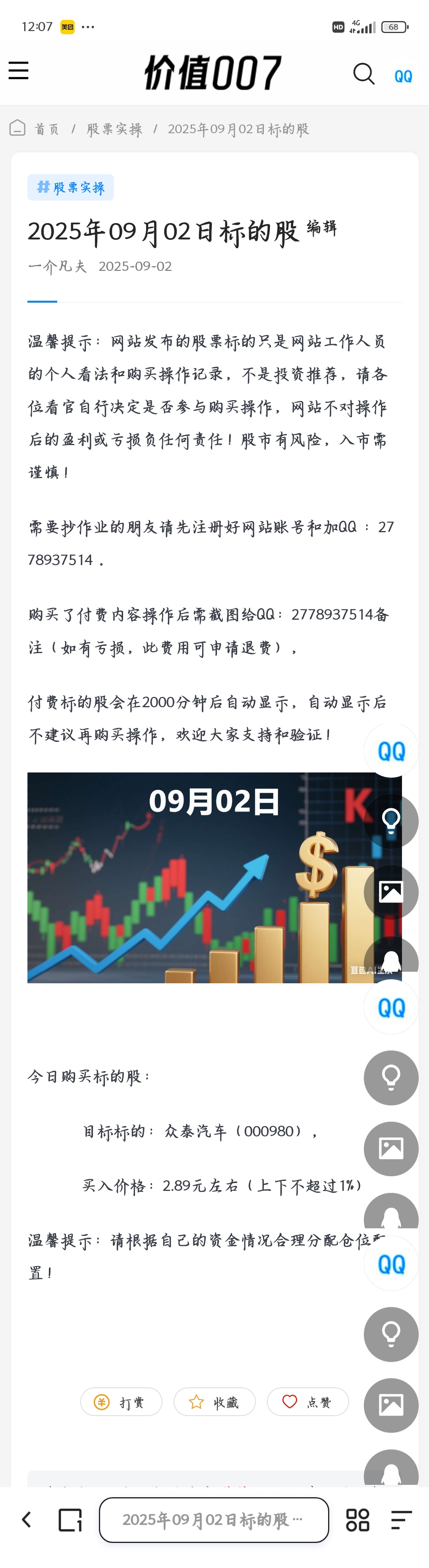 温馨提示:网站发布的股票标的只是网站工作人员的个人看法和购买操作记录,不是投资推荐,请各位看官自行决定是否参与购买操作,网站不对操作后的盈利或亏损负任何责任!股市有风险,入市需谨慎!